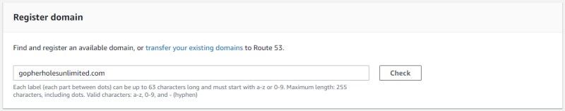 As I mentioned earlier, AWS makes it pretty easy to purchase domain names with their Route 53 service.. We’re going to use that method to purchase our domain today.
