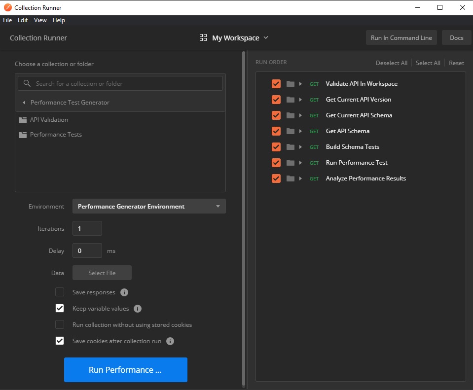 - Select the Performance Generator Environment in the Use an environment (optional) picker