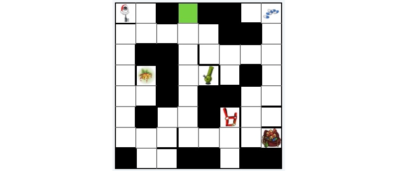 I made a basic dungeon crawler game. I started with an 8x8 grid and drew out a dungeon floor with walls, locked doors, and items hidden around the map. The objective is to find all the items and get through the dungeon.